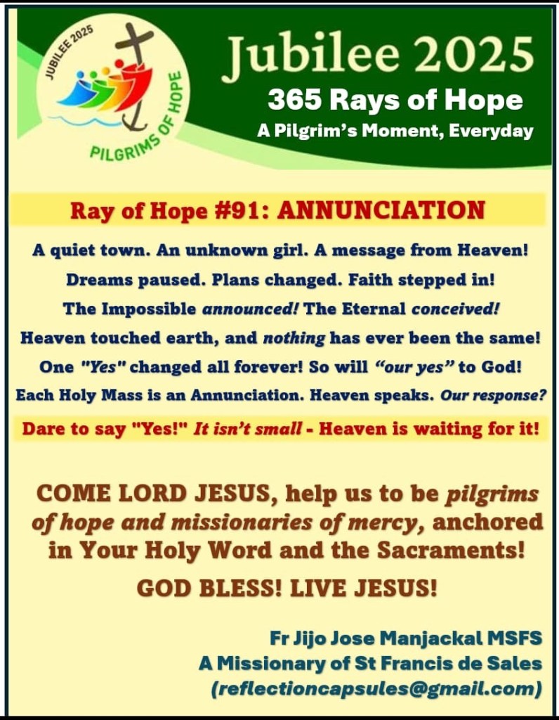 On this Solemnity of the Annunciation of the Lord, we remember with joy and gratitude how Mary said: “Yes to the Divine Plan”….