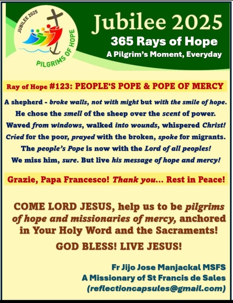 Let us revive our hearts to firmly install the Lord as the True Alpha (the beginning) and the True Omega (the end) of all our activities…