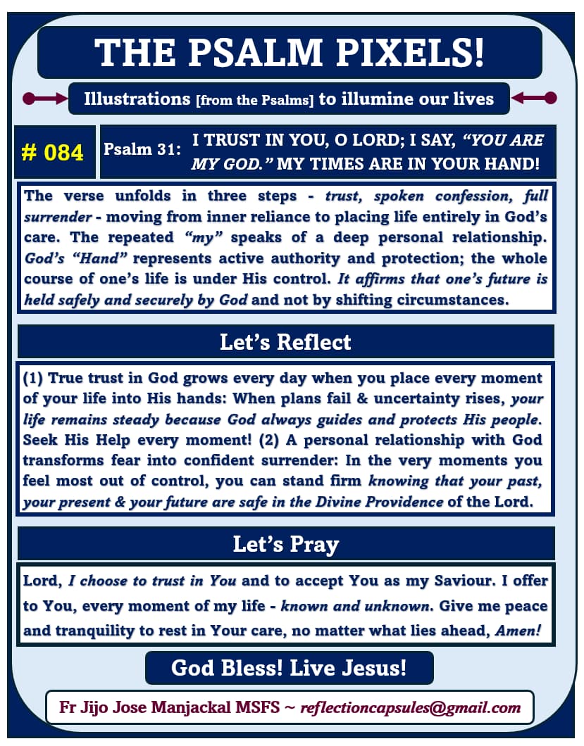 The Psalm Pixels The Psalm Pixels #084 April 5, 2026 Fr Jijo Manjackal MSFSLeave a comment Share this: Share on X (Opens in new window) X Share on Facebook (Opens in new window) Facebook Like Loading...