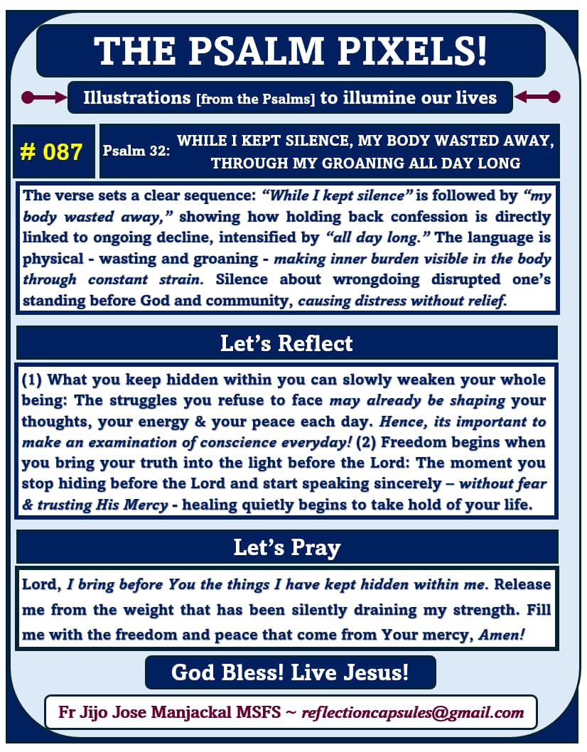 The Psalm Pixels The Psalm Pixels #087 April 9, 2026 Fr Jijo Manjackal MSFSLeave a comment Share this: Share on X (Opens in new window) X Share on Facebook (Opens in new window) Facebook Like Loading...