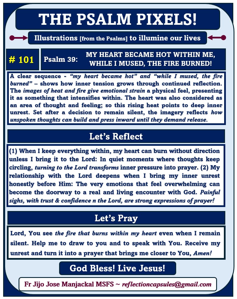 The Psalm Pixels The Psalm Pixels #101 April 22, 2026 Fr Jijo Manjackal MSFSLeave a comment Share this: Share on X (Opens in new window) X Share on Facebook (Opens in new window) Facebook Like Loading...