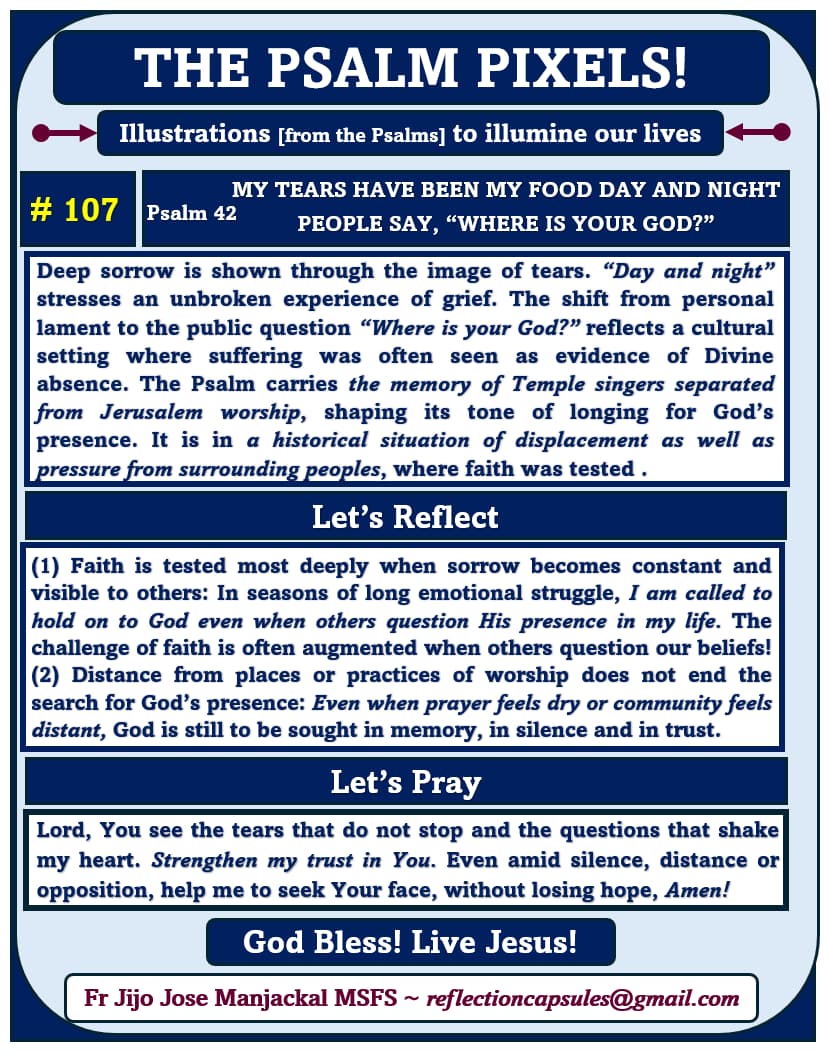 The Psalm Pixels The Psalm Pixels #107 April 29, 2026 Fr Jijo Manjackal MSFSLeave a comment Share this: Share on X (Opens in new window) X Share on Facebook (Opens in new window) Facebook Like Loading...