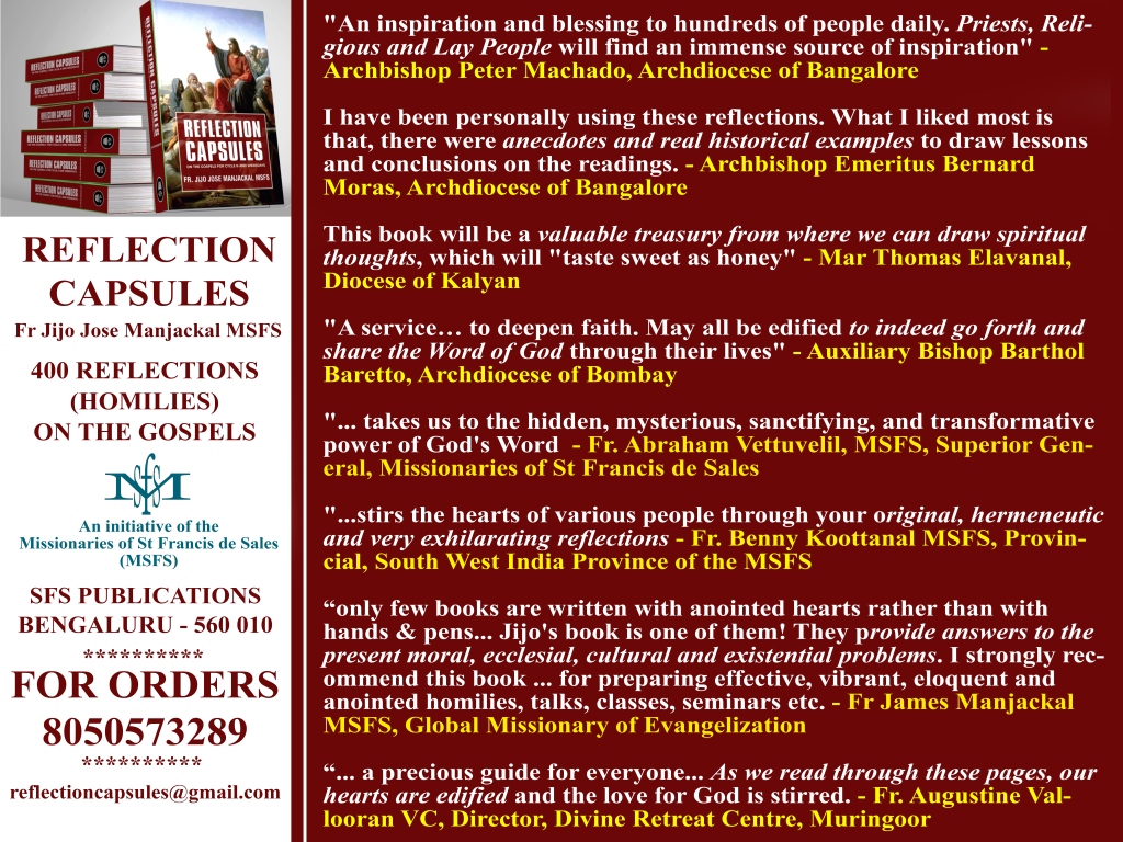 AMAZON INDIA ORDER LINK: https://www.amazon.in/REFLECTION-CAPSULES-Daily-Reflections-Gospels/dp/8185812705/ref=sr_1_1?dchild=1&keywords=reflection+capsules&qid=1613919727&sr=8-1