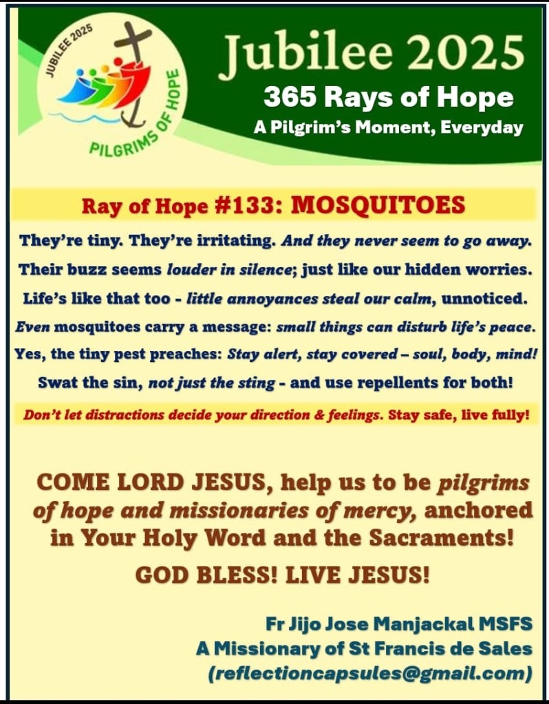Rays of Hope #133 Mosquitoes May 6, 2025 Fr Jijo Manjackal MSFSLeave a comment #133 Mosquitoes .JPGDownload