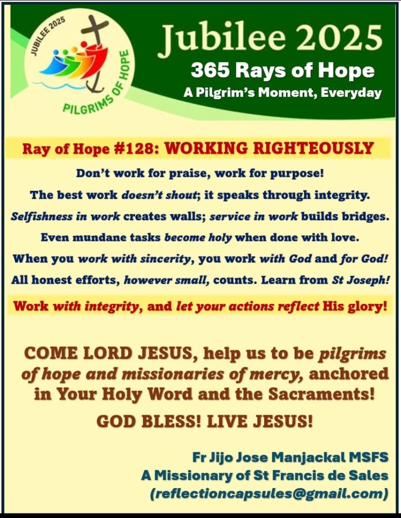 Rays of Hope #128 Working Righteously May 1, 2025 Fr Jijo Manjackal MSFSLeave a comment #128 Working Righteously .JPGDownload