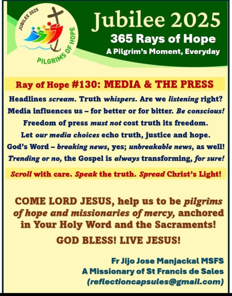 Rays of Hope # 130 Media & the Press May 2, 2025 Fr Jijo Manjackal MSFSLeave a comment #130 Media & the Press.JPGDownload