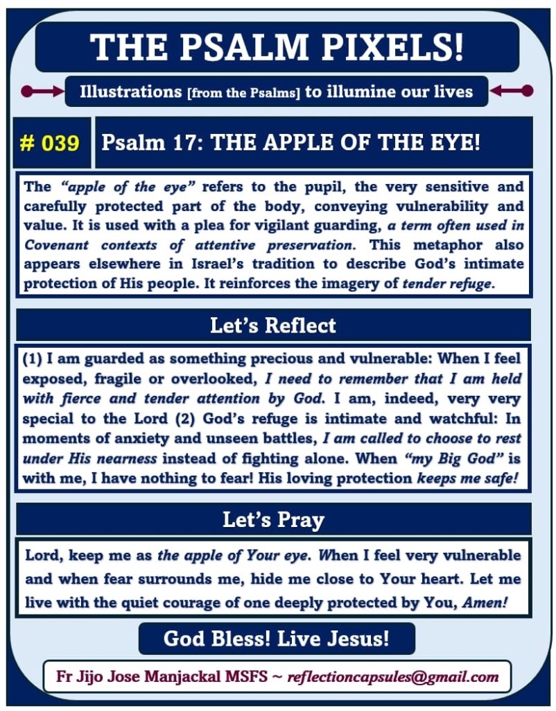 May we see the presence of the Lord in all the people and situations of our life as we seek to sing with the Psalmist: “How lovely is thy dwelling place, O Lord of hosts!” (Ps 84:1)